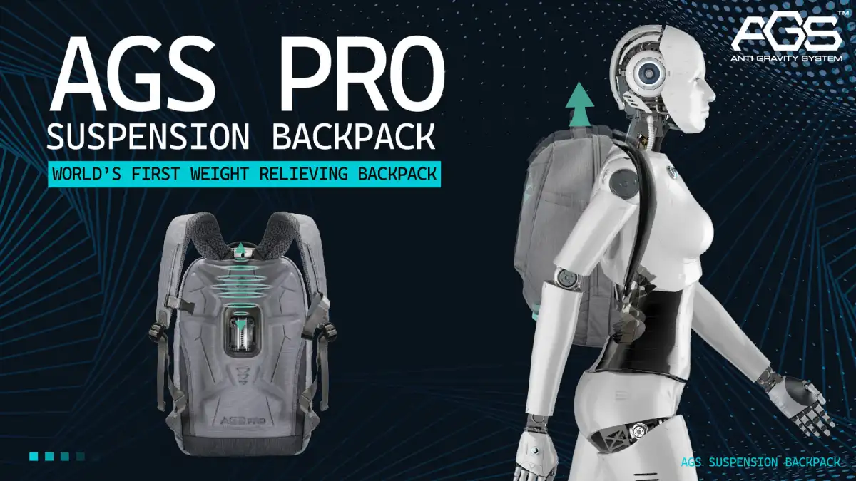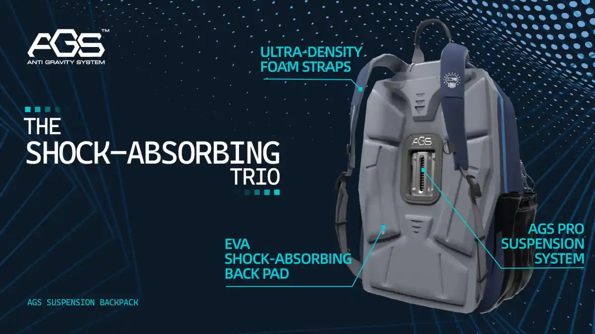 AGS is a revolutionary technology consisted of a stainless steel rebound core behind a backpack that absorbs downward impact and creates upward rebound force. Protecting your muscle and spine.